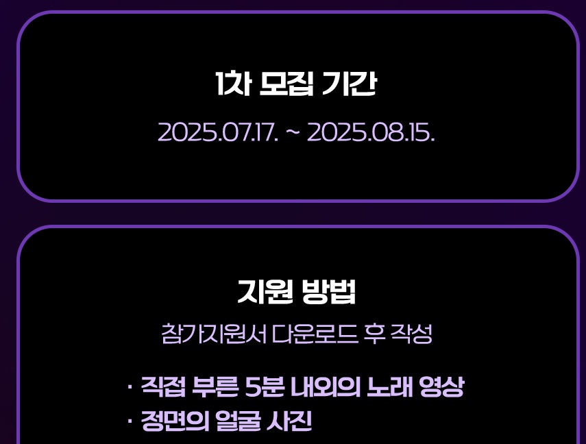 - 자기소개 영상 + 노래 영상 첨부 (5분 이내)
