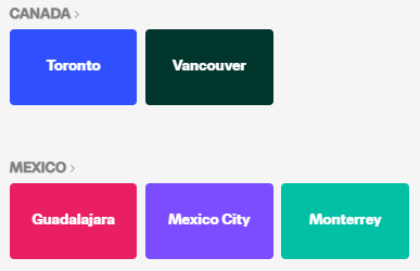 | 개최 도시 | 총 16개 도시 (미국 11, 멕시코 3, 캐나다 2) |